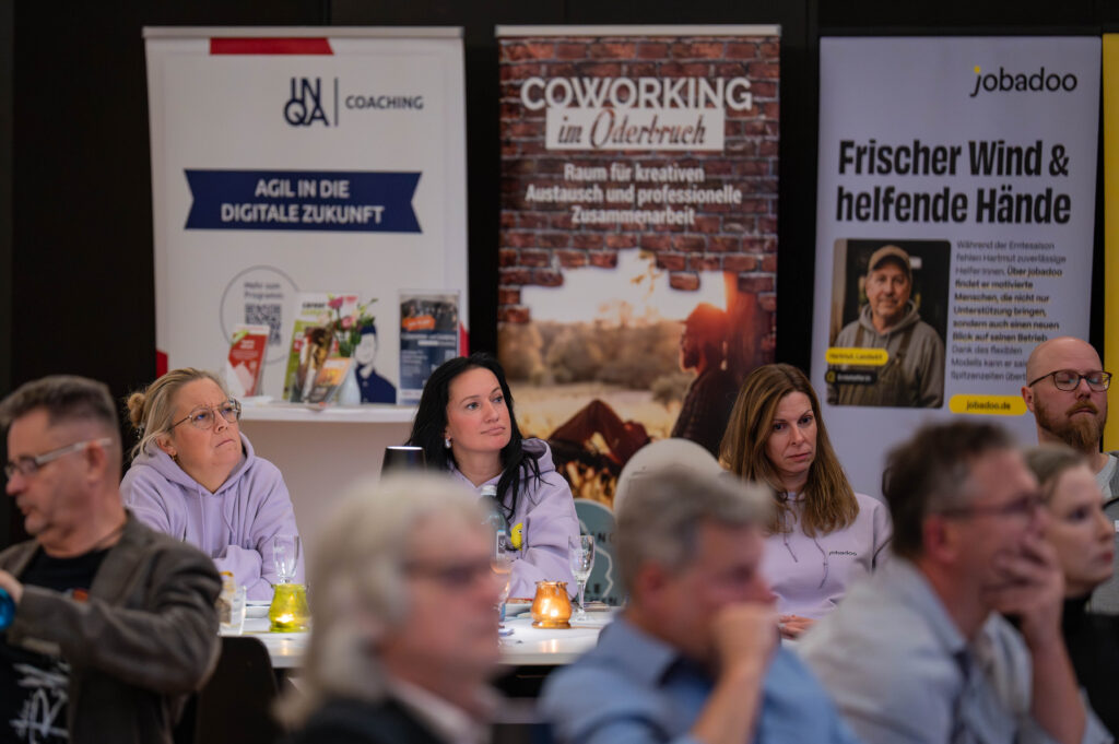 Im Anschluss stellten der Unternehmerverein Fredersdorf-Vogelsdorf e.V., der Gewerbeverband Neuenhagen-Hoppegarten e.V. und der Marzahn-Hellersdorfer Wirtschaftskreis e.V. ihre Arbeit vor. Der Austausch der Wirtschafts- und Gewerbevereine war vor allem ein Erfahrungsaustausch darüber, wie die jeweiligen Vereine arbeiten, gewachsen sind und heute organisiert sind und wie welche Vorteile die gut organisierte Vernetzung hat.